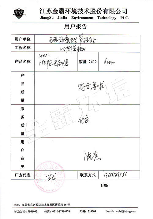 無錫市桃花山垃圾填埋場用戶報告